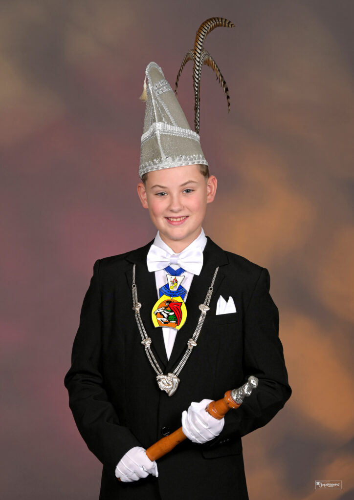 Ook onze jeugdprins is muziekaal en speelt trombone bij de Sjpaskapel “Mit de moel d’r aa”, en doet aan Stuntsteppen bij “the Promise” en freerunnen bij “Minded Motion”.